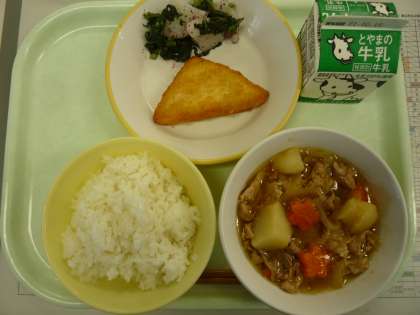 ごはん 肉じゃが はんぺんフライ ゆかり和え 牛乳
