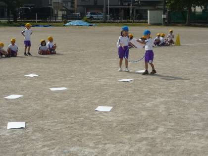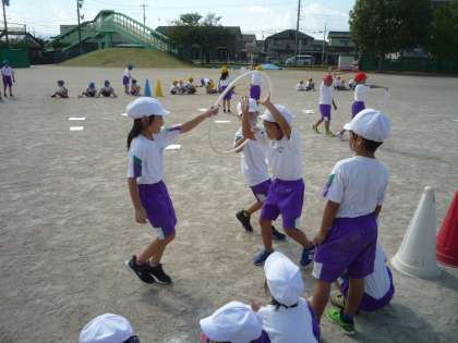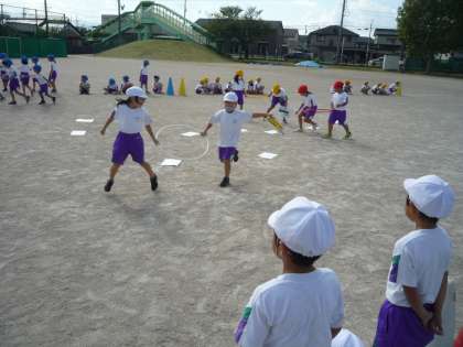 にこにこスポーツ大会では、子供たちが楽しそうに競技に臨みました。一生懸命競技するだけでなく、友達を応援する姿やアドバイスする姿も見られました。