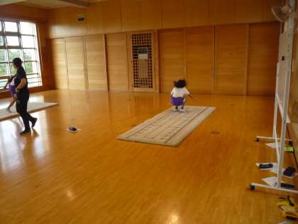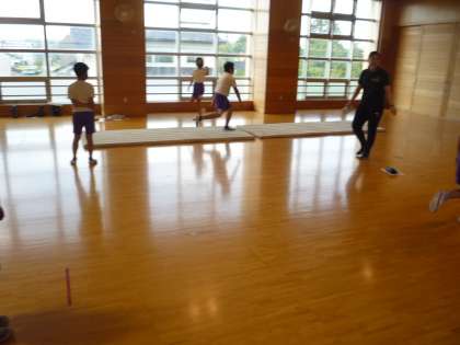 走り幅跳びの助走の練習です。踏切手前3歩を意識しました。
