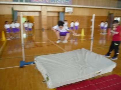 走り高跳びの学習では、はさみ跳びの練習をしました。