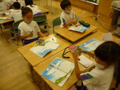 「くじらぐも」の学習では、話の中の子供たちのつぶやきを吹き出しに書きました。