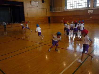 集合ゲームや列車ゲームでは、友達と協力したり、触れ合ったりして運動することができました。