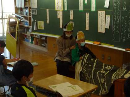 「お手紙」の学習で、かえるくんやがまくんの気持ちや様子を考えました。その授業で先生たちの校内研修を行いました。