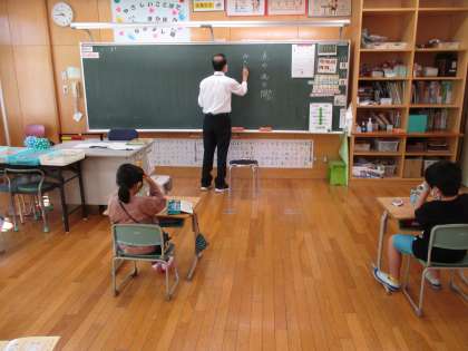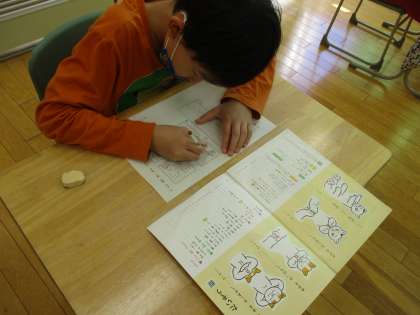 今日は、立石先生に「ともだちや」と「アリとキリギリス」の本を読んでいただきました。その後、プリントで丁寧に書く練習をしました。花丸をたくさんもらって、嬉しそうな子供たち、次回も楽しみにしています。