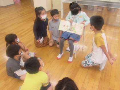 1年生に本を好きになってもらうために、話合いを重ねて班で一冊決め、今日1年生へ読み聞かせを行いました。1年生に喜んでもらえてよかったですね。