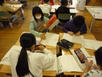 「ちいちゃんのかげおくり」の学習で、グループの友達とちいちゃんの気持ちについて話し合いました。