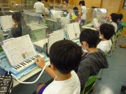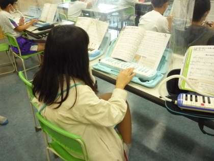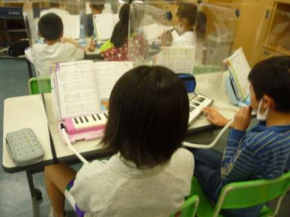 鍵盤ハーモニカやリコーダーの練習を友達と聴き合いながら行っています。