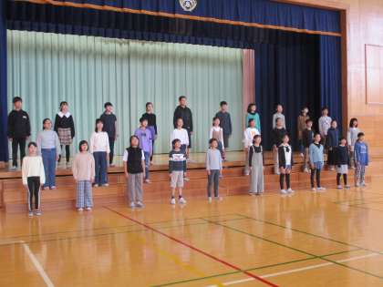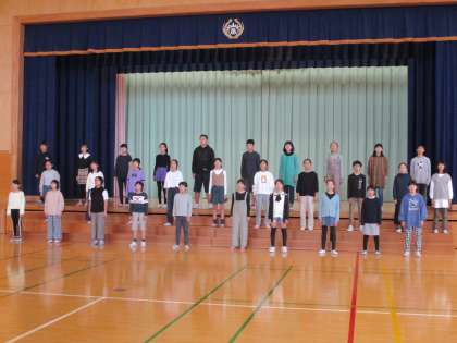ケープルテレビで放映されている「学び舎のうた」を収録しました。6年生の有志30名程で美しいハーモニーを響かせ、校歌を歌いました。児童会スローガンや校歌に対する思いなど6年生を代表して伝えました。放映日が楽しみです。