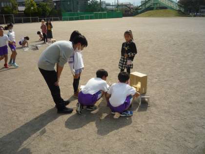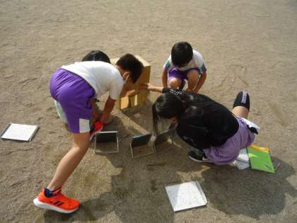 何枚かの鏡で光を集め、1枚の時の光との温度の違いを観察しました。