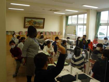 楽しく活動に取り組んでいます。ALTの問いかけにも臆することなく応えていました。