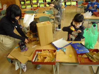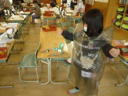 ゴミ袋ですてきな洋服を作ろうとしている子供もいました。