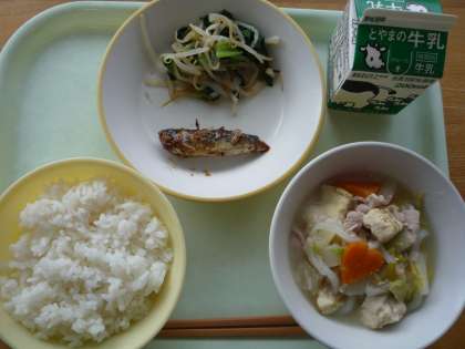 ごはん 塩こうじ鍋 いわしの土佐煮 おひたし 牛乳