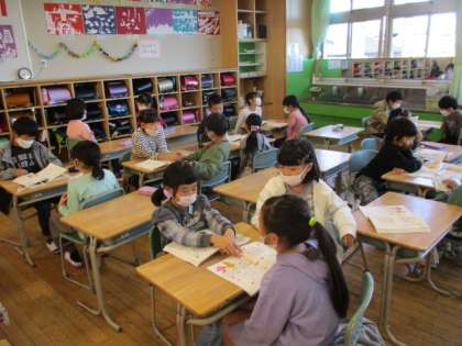 国語科の授業では、ペアやグループになって友達と話合い活動をしています。