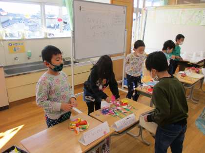 今日はなかよし商店街に、ひまわり級のみなさんを招待しました。「たくさん買ってもらえて嬉しかったよ」「ぜんぶ買ってもらってよかったよ」と嬉しさいっぱい笑顔いっぱいで振り返りました。ありがとうのお手紙をもらい、ますます嬉しくなったなかよし級のみんなでした。ひまわり級のみなさん、たくさん買ってくれてありがとうございました。
