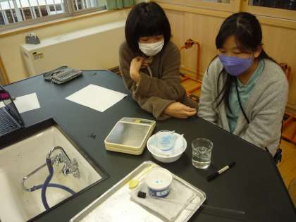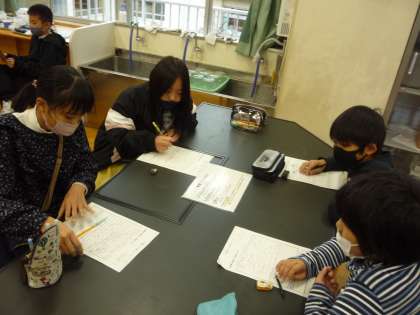 水に食塩を溶かすと食塩が見えなくなりました。その食塩はどうなったのかを仮説を立て、それを証明するための実験を考え、実践しています。