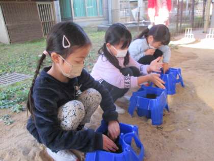 来春、かわいい花で新1年生を迎えることができるように、心を込めて植えました。