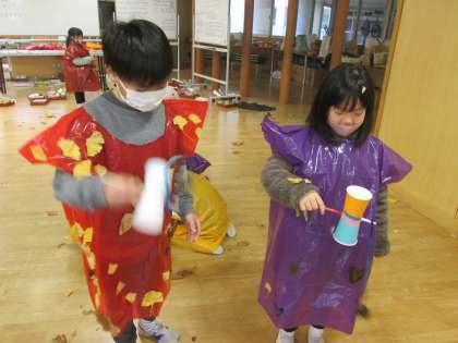 どんぐりごまや剣玉で競争したり、マラカスでダンスをしたりと秋の遊びを楽しみました。