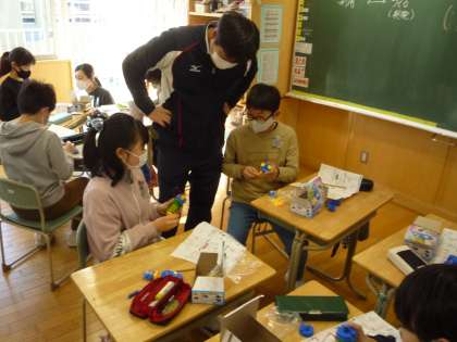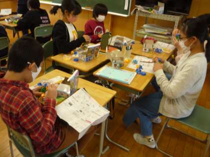 電気のはたらきの学習では、グループで協力しながら実験をしています。