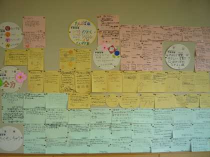 らんしゅう心の木がステッ木ーになりました。友達に優しくしてもらったことや友達のいいところの実がいっぱい実っています。