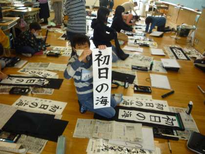 書き初めの練習をしました。