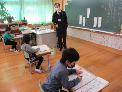 今日から、かきぞめれんしゅうが始まりました。下敷きをおいて、お手本を見ながら丁寧に書きます。今日は、「大きく書くこと」に気を付けて書きました。字のバランスを考えて、のびのびと書きました。次回の練習も楽しみです。