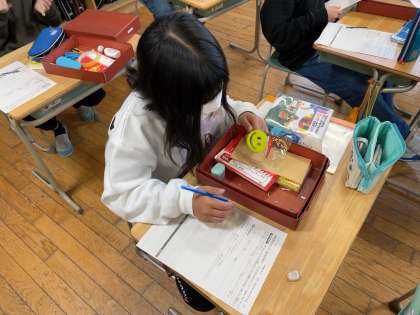 家庭科では、気持ちよく過ごすために「整理整頓」することの大切さを学習しています。まずは身近なところから、ということでお道具箱の整理整頓をしました。必要なものと必要でないものに分けたり、よく使う物の置き場所を考えたりしながら、みんなぴかぴかのお道具箱にしていました。