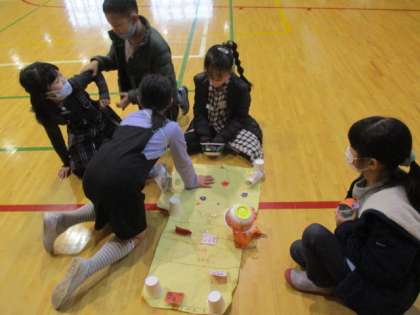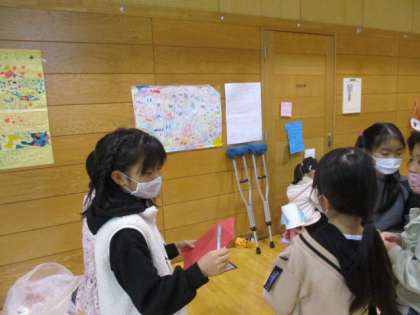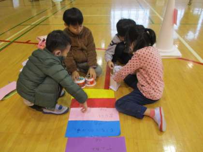 「2年生おもちゃ大会」では、「みんなで楽しく」を目当てに、他のクラスの子供たちと仲良く遊びました。