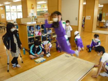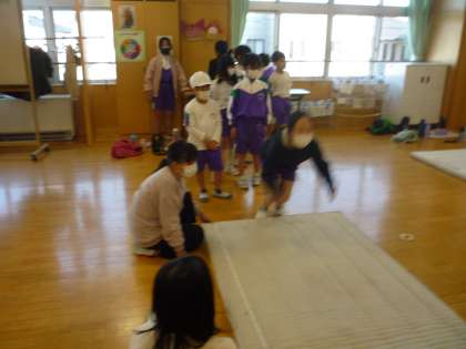 低学年の子供たちは、お兄さんやお姉さんの記録にびっくり!自分たちもその記録に近づけるよう頑張っています。高学年の子供たちは低学年の子供たちに、こつを教えてあげる場面も見られました。