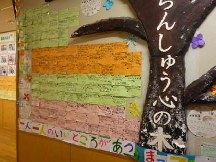 友達のいいところ見付けを行いました。ペアやグループでお互いのいいところを見付け合いました。子供たちは、自分のいいところを知ることができてうれしそうでした。お互いのいいところを認め合って、温かい人間関係をつくっています。