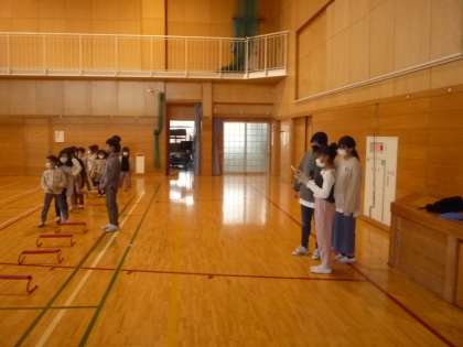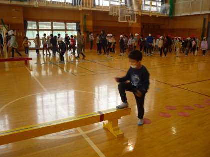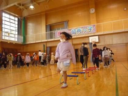 昼休みに運動員会が企画した「障害走」に低学年が参加しました。