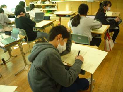国語科では、卒業文集に取り組んでいます。図画工作科では、自分の思い出の校舎(場所)を描いています。