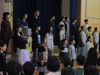 全校児童で校歌を歌う場面では、6年生のグループ「らんしゅう30」が代表として、ひな壇からも歌声を響かせてくれました。