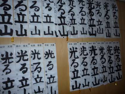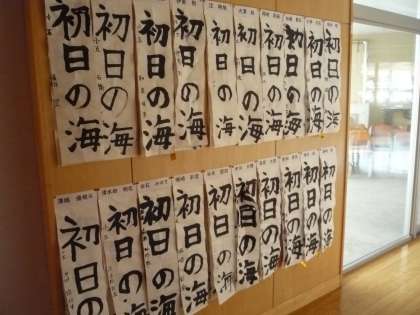 書き初め大会の審査を行い、金賞を決めました。どの子供の作品からも努力が感じられました。