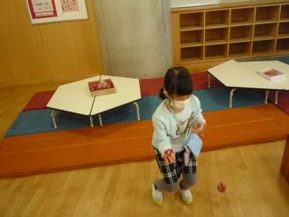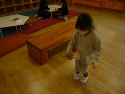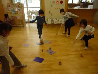 生活科で学習中の昔の遊びに挑戦しています。こまやけん玉、お手玉等できるようになるため頑張っています。