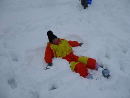 今日は待ちに待った「雪遊び」をしました。そり遊びは、ちょっぴり怖くて勇気が必要でしたが、いざやってみると面白くなり、何度も遊ぶことができました。雪の上に寝転んだり、雪だるまをつくったり、雪合戦をしたり、楽しい1時間でした。