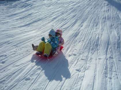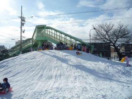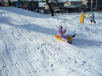 冷え込んでいるおかげで、よく滑ります。歓声を上げて楽しんでいます。