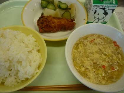 ごはん 魚の利休揚げ レモン和え 中華かき玉汁 牛乳