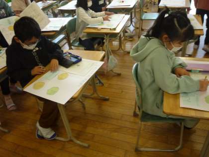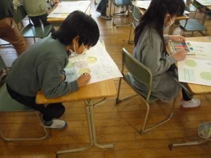 頑張ったことの発表を画用紙にまとめたり、練習したりしています。