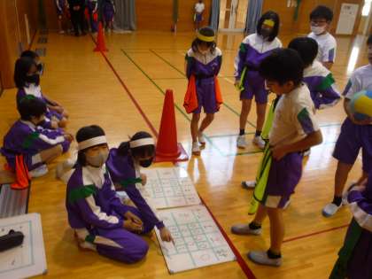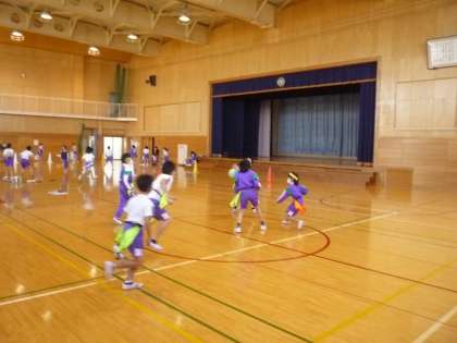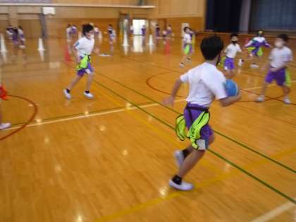 フラッグ・フットボールの学習では、作戦を考えながらゲームを行っています。