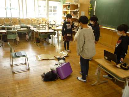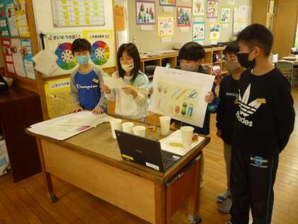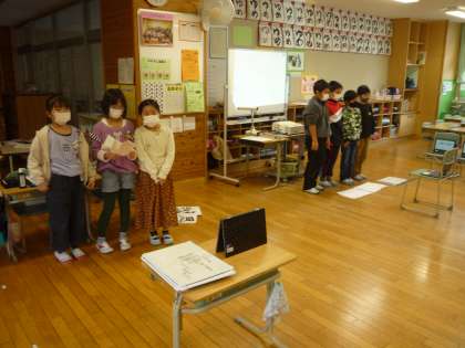 初めて学習した習字や理科の実験など、クイズや劇を交えて発表しています。