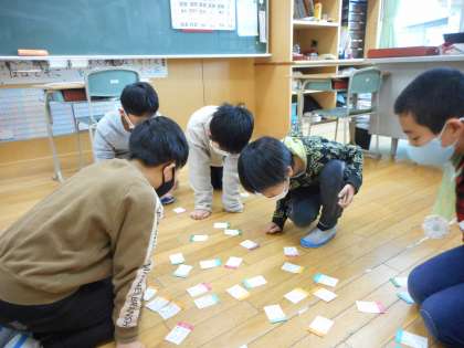 社会科の時間によく都道府県カルタをしています。それぞれの都道府県の特産物や有名な観光地等が読み札になっています。「〇〇といえば何県。」と子供たちはそれそれ得意な県ができてきて、読み札を最後まで聞くこともなくすばやく札をとれるようになってきました。「今日は〇枚とるぞ!」「〇県だけは、絶対に取る!」などと、気合いが入っています。