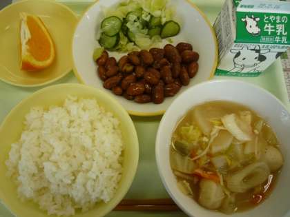 ごはん ちゃんこ鍋 煮豆 きざみ和え いよかん 牛乳