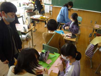 卒業お祝いプロジェクトの活動に取り組んでいます。6年生への感謝の気持ちや来年度最高学年としての自覚を高めています。