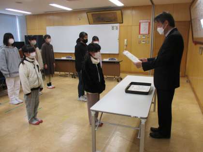 2月18日(金)、富山県書き初め大会等の受賞紹介を行いました。