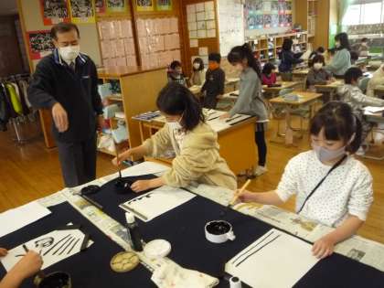 3年生で学習する書写に挑戦し、進級への思いを高めています。
