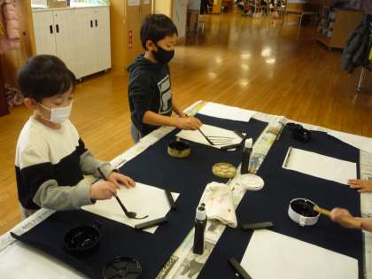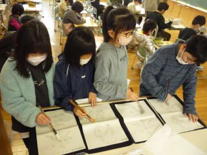 3年生で学習する書写に挑戦し、進級への思いを高めています。