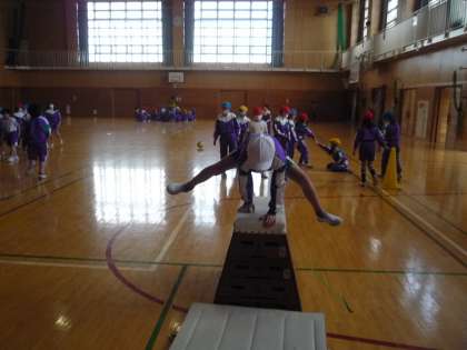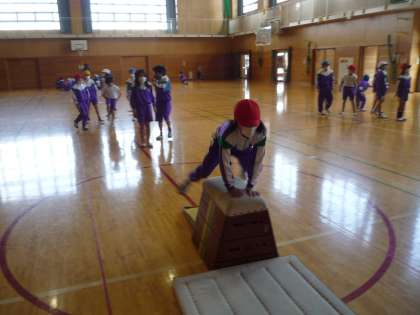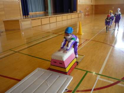 跳び箱遊びでは、開脚跳びに挑戦しました。