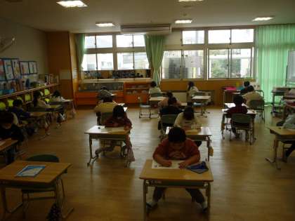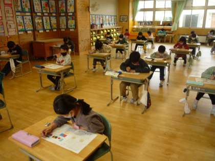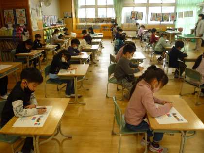 まとめテストに取り組んでいます。1年生で学習したことを思い出しながら解いていました。