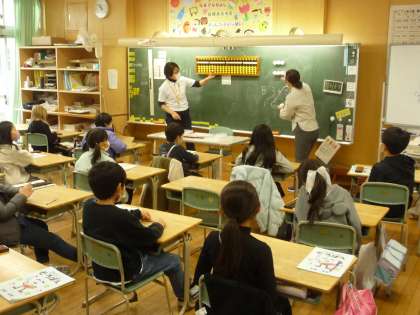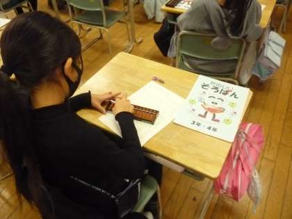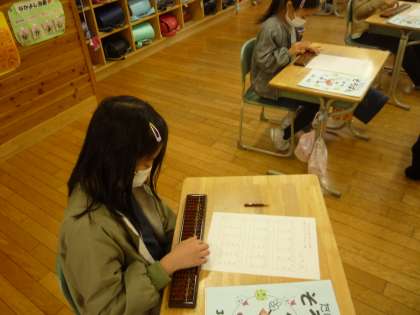 そろばん教室の2日目です。今日は繰り上がりのある計算にも挑戦しました。