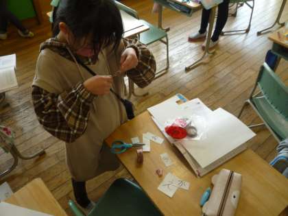 展開図どおりに面を貼り合わせ、直方体を作りました。どの面がどの面と向き合うのかなどを調べながら作っています。